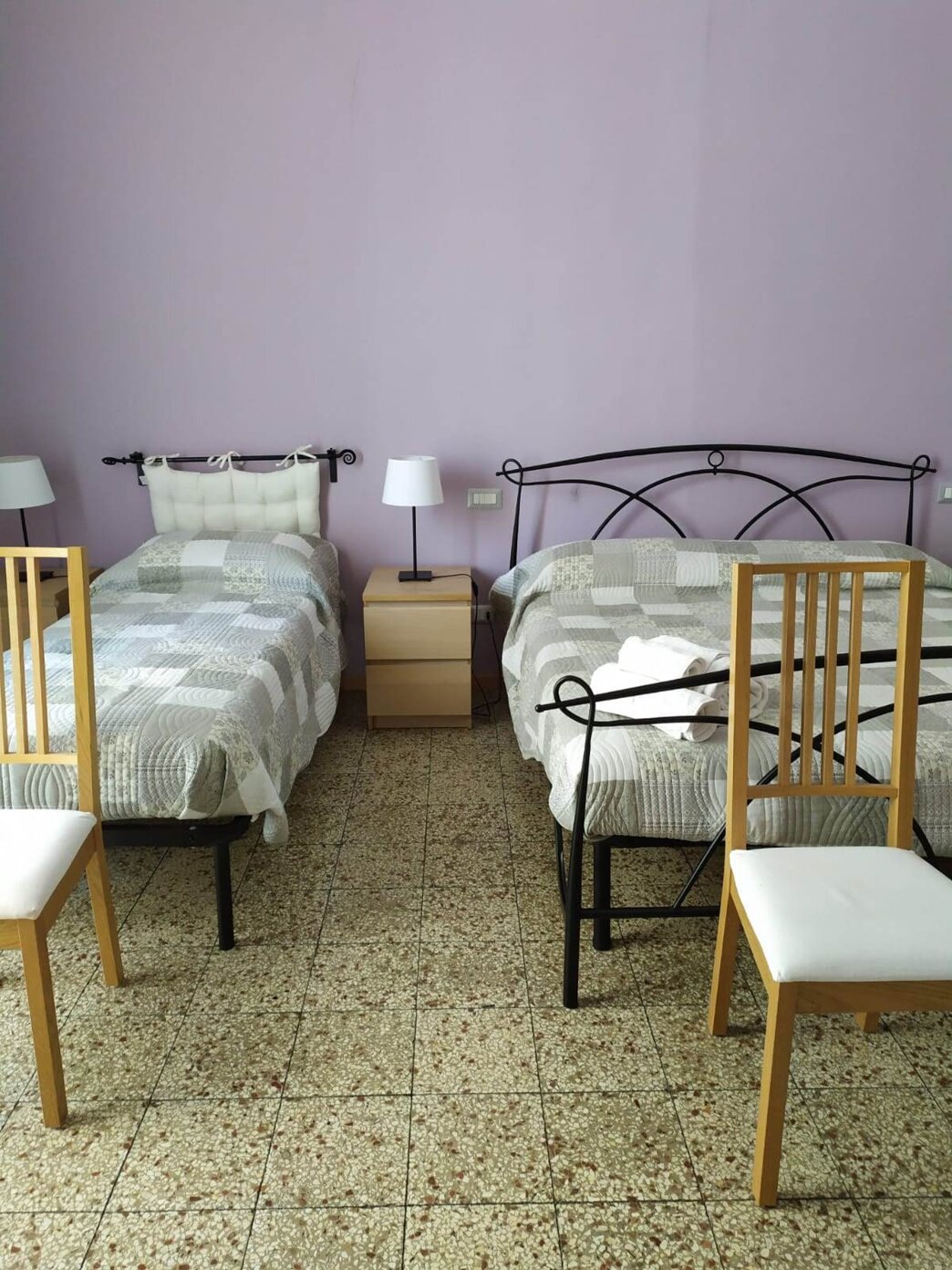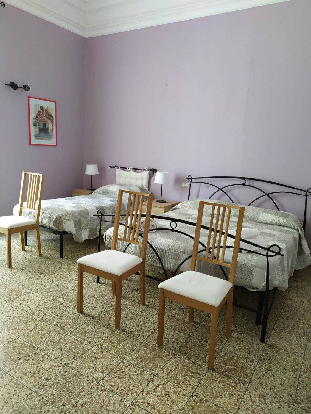 Glicine: a spacious triple room (about 25 m²) with a double bed and a single one. The French door with a balcony overlooks the entrance of the building, but you can also see the square and Via Umberto.